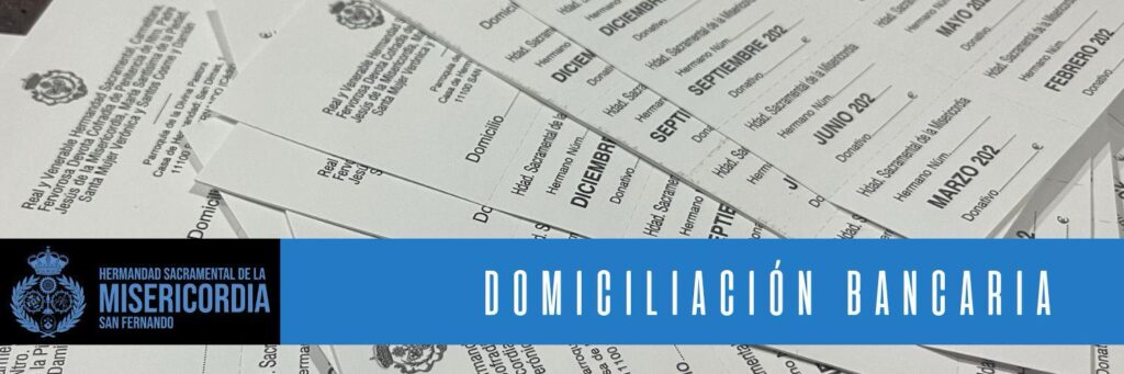 Desde la Tesorería de la Hermandad se informa a todos los hermanos que los métodos disponibles para el resarcimiento de las cuotas son la domiciliación bancaria o el cobrador.