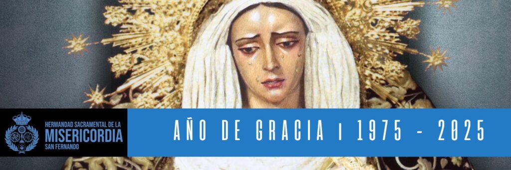 El año 1975 fue un año especial e histórico para la Hermandad de la Misericordia en el devenir de los tiempos. Durante aquellos doce meses, la Hermandad, en pleno auge desde el momento de su fundación, fue pionera en la creación de su Junta Auxiliar –hoy Grupo Joven-, fue la primera Hermandad de la ciudad en obtener el Título de Sacramental y, en el mes de diciembre, se produjo la llegada y puesta al culto de la Santísima Virgen de la Piedad.