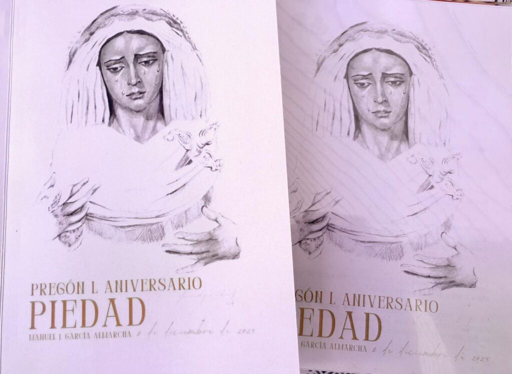 En consonancia con la celebración del cincuentenario, la edición será estrictamente limitada a 50 ejemplares, uno por cada año de devoción a la Virgen de la Piedad. Aquellas personas que realicen reserva previa podrán recoger su ejemplar a la salida del Pregón, o bien solicitarlo a través de los canales habituales de la Hermandad hasta agotar existencias.