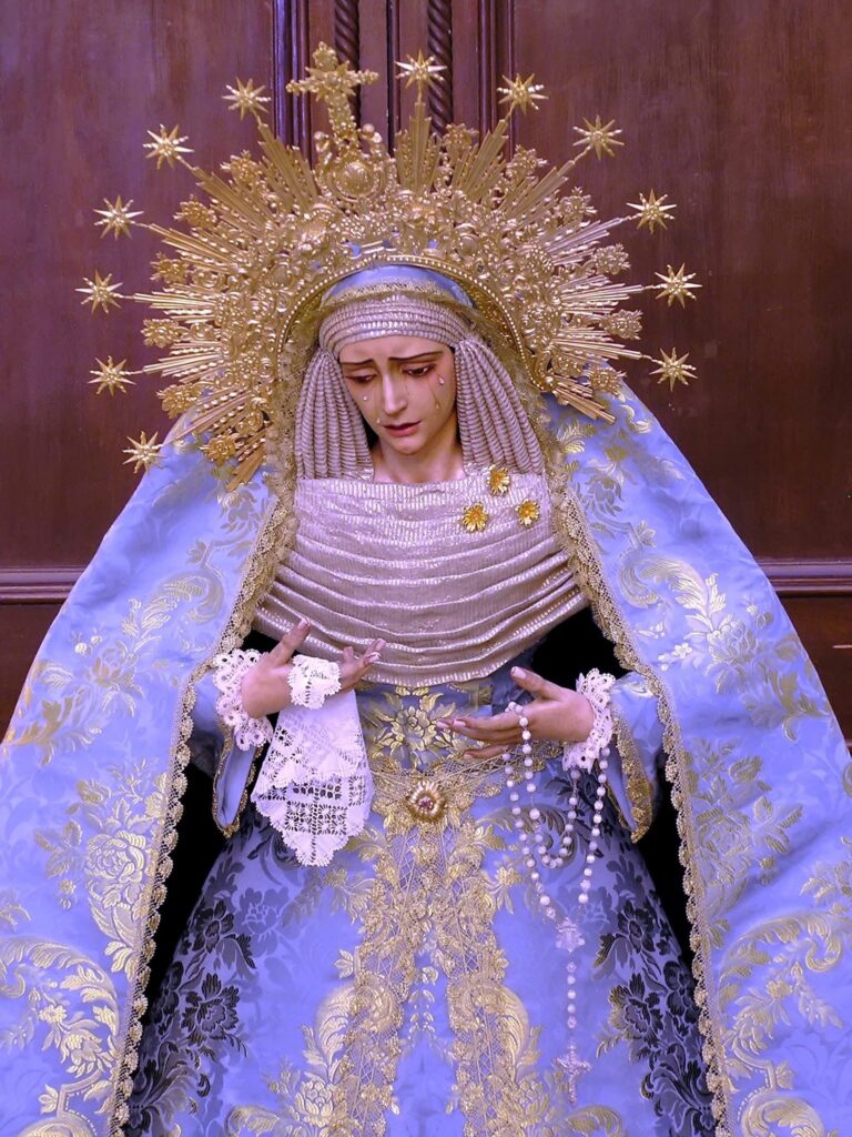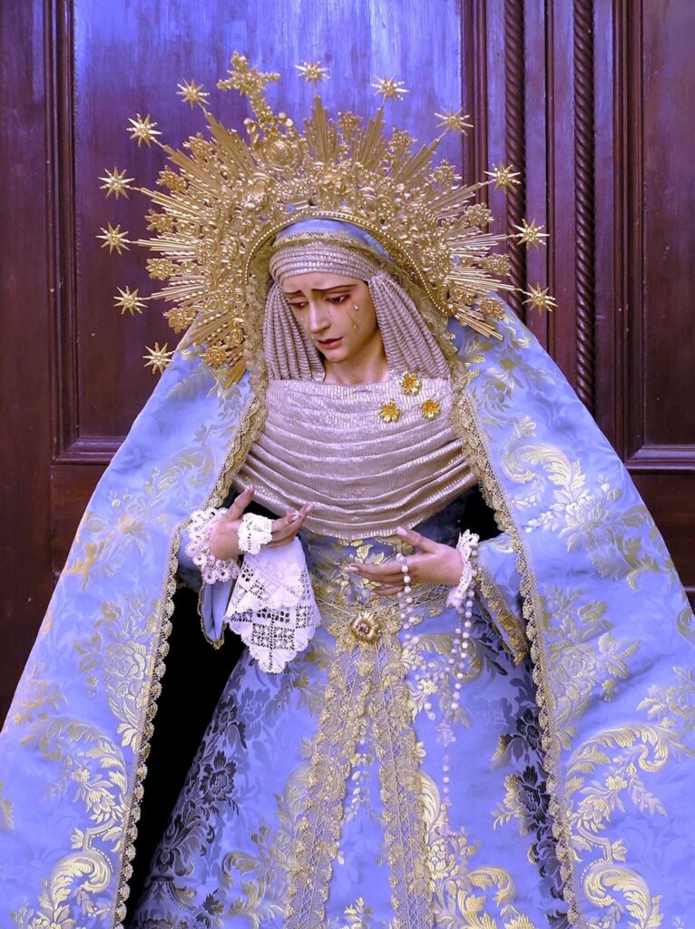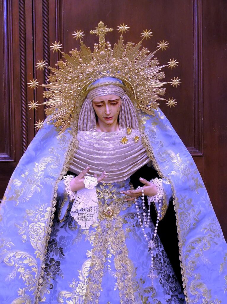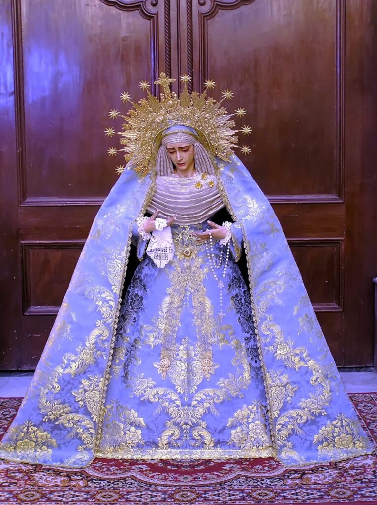 Tras la celebración el 8 de diciembre de la Solemne Misa y besamano, la Virgen de la Piedad ha sido ataviada con los colores concepcionistas para celebrar la octava de la purísima y el tiempo de Navidad.