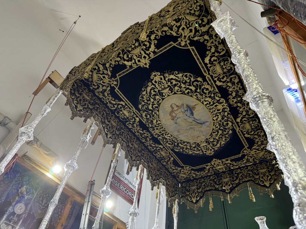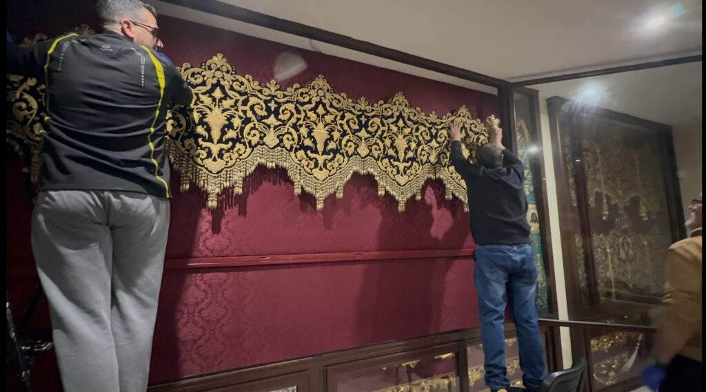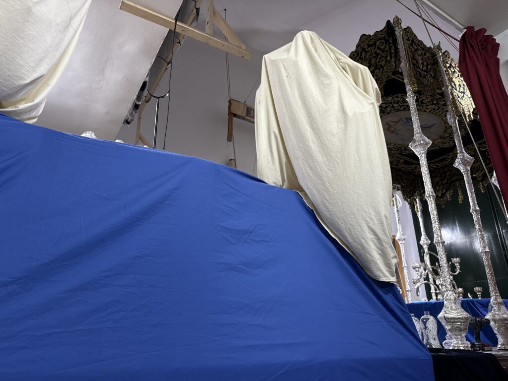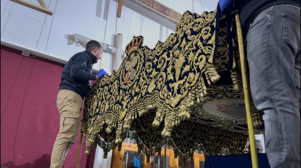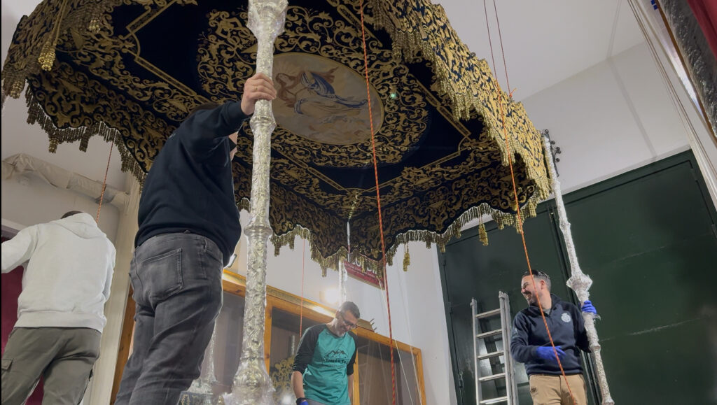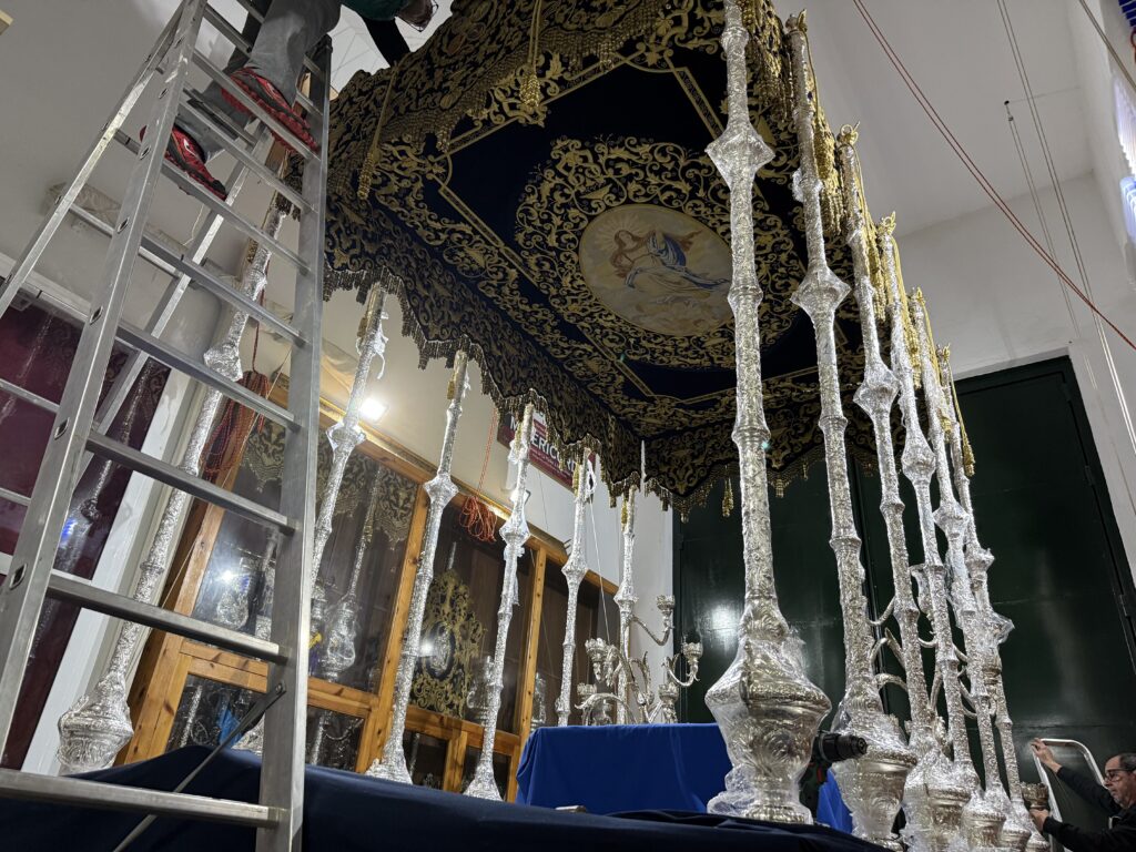 Desde primera hora de la tarde se ha procedido a las labores del montaje del palio por los miembros que conforman el equipo de mayordomía de la hermandad, con las vistas puestas en un nuevo Jueves Santo.