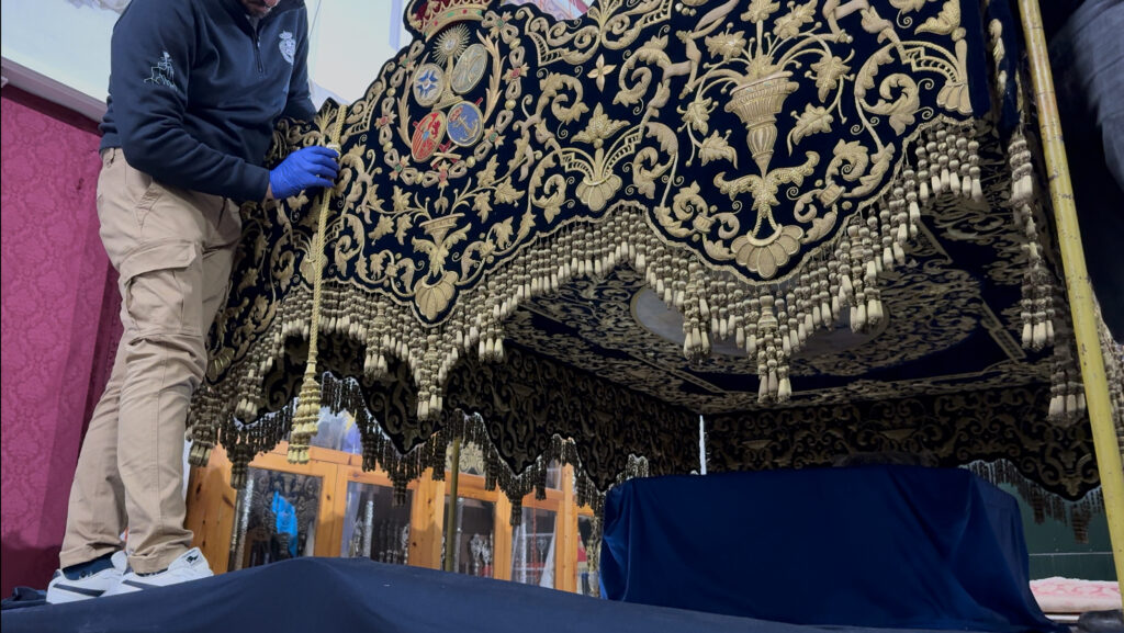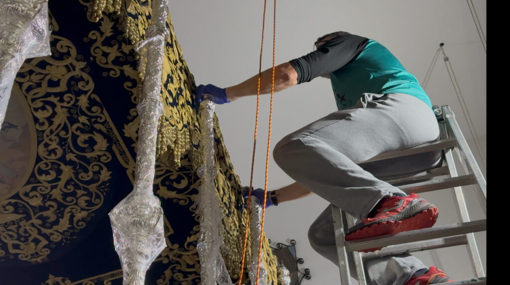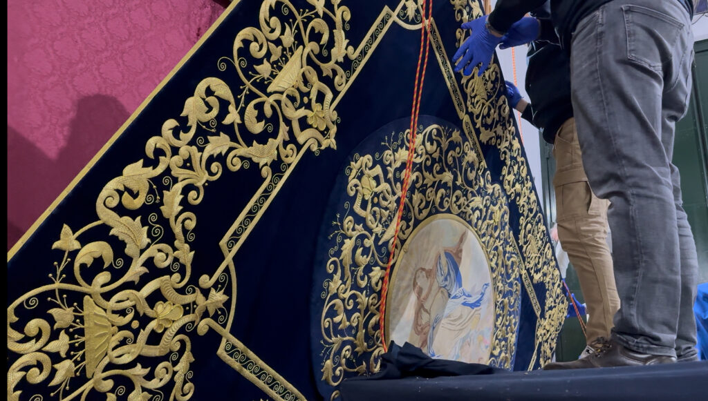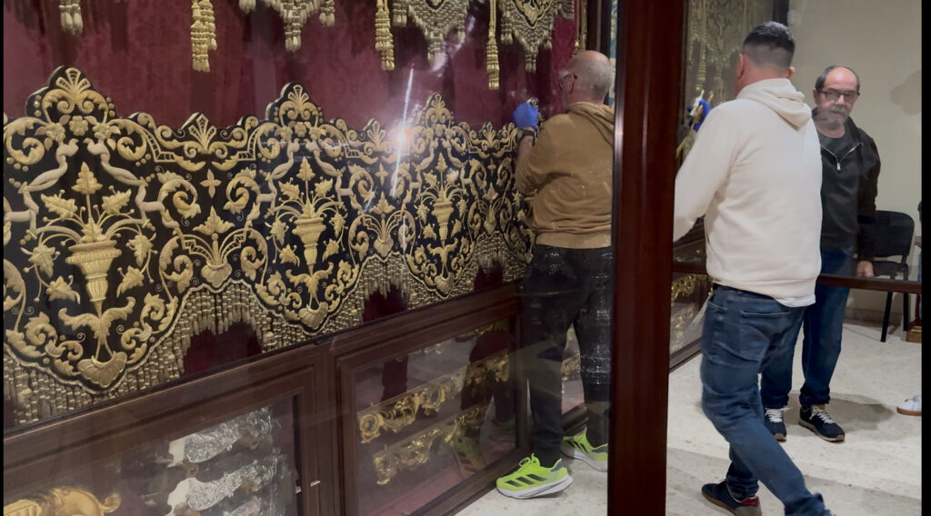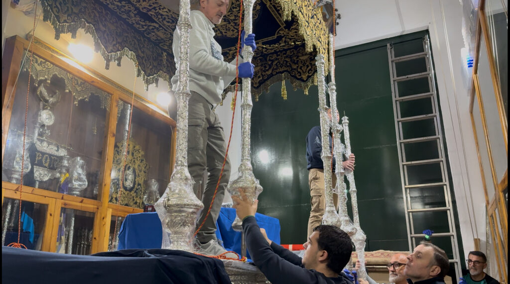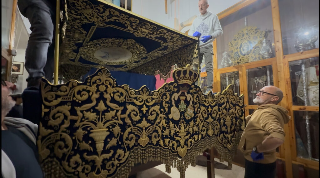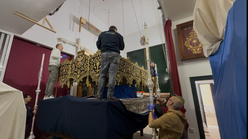Desde primera hora de la tarde se ha procedido a las labores del montaje del palio por los miembros que conforman el equipo de mayordomía de la hermandad, con las vistas puestas en un nuevo Jueves Santo.