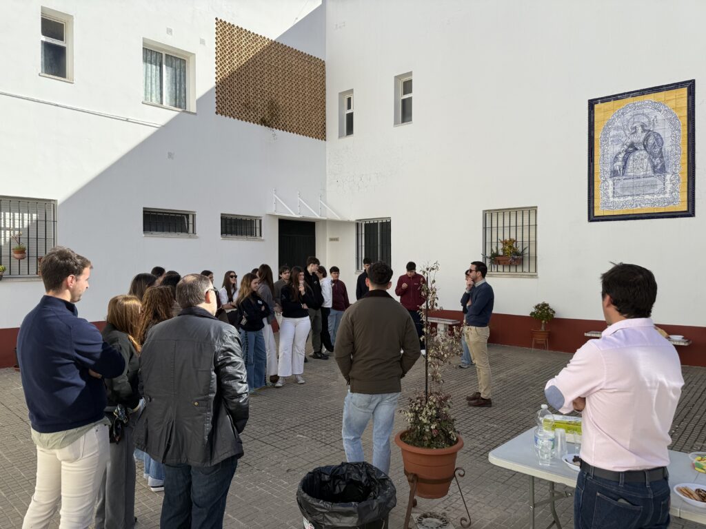 Emilio Prieto, en ambiente distendido, atendió a los jóvenes transmitiéndoles sus vivencias como cofrade, y su experiencia en los atriles. Emilio estuvo acompañado por el que será su presentador, el cofrade crucero José Manuel Arriaza Parro.
