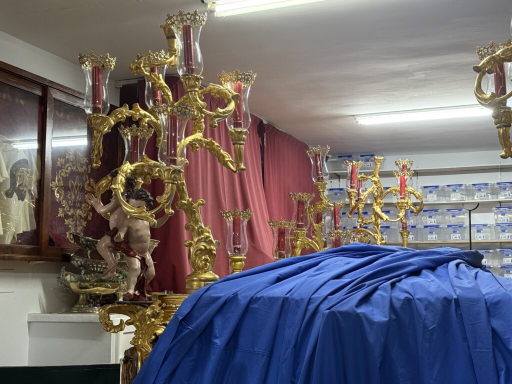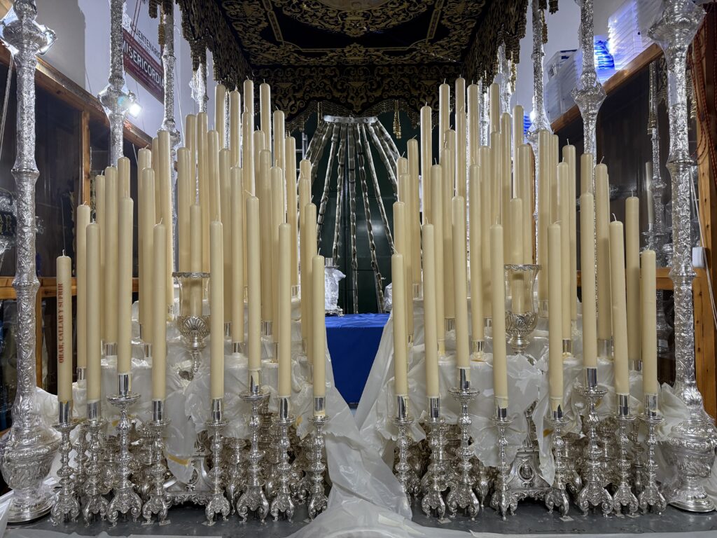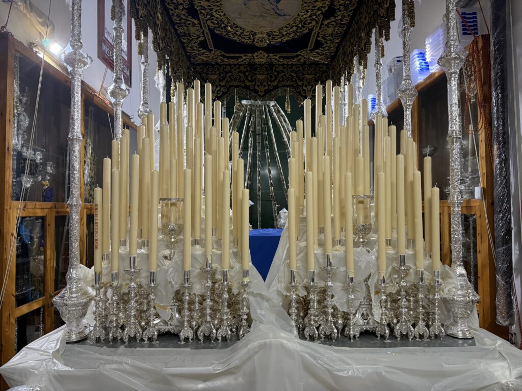 Un signo inequívoco de que “todo está consumado” es la cera fundida en nuestro pasos, en una candelería que ofrece la imagen más clásica de nuestro paso de palio.