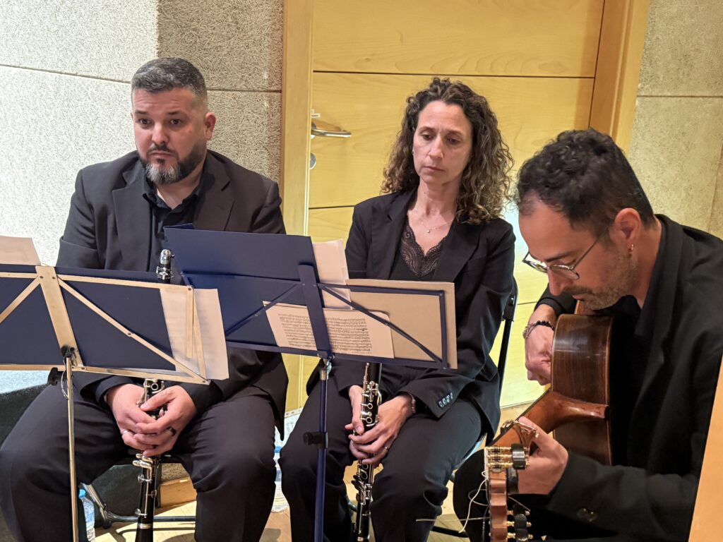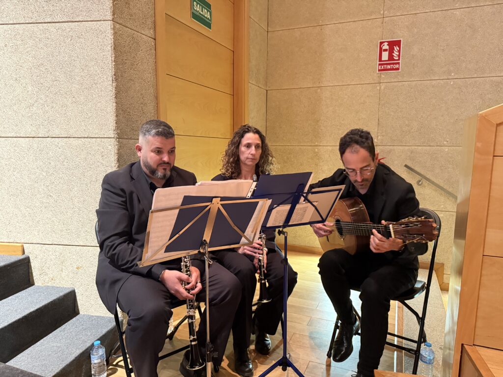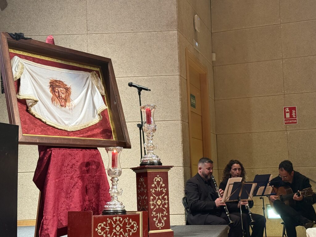 El acto contó también con un destacado acompañamiento musical. Los clarinetistas Juan José Muriel Peci y María de los Ángeles Aparicio Fernando, junto al guitarrista flamenco Javi “de Carmen”, interpretaron diversas marchas procesionales que aportaron solemnidad y ambiente cofrade a la velada.