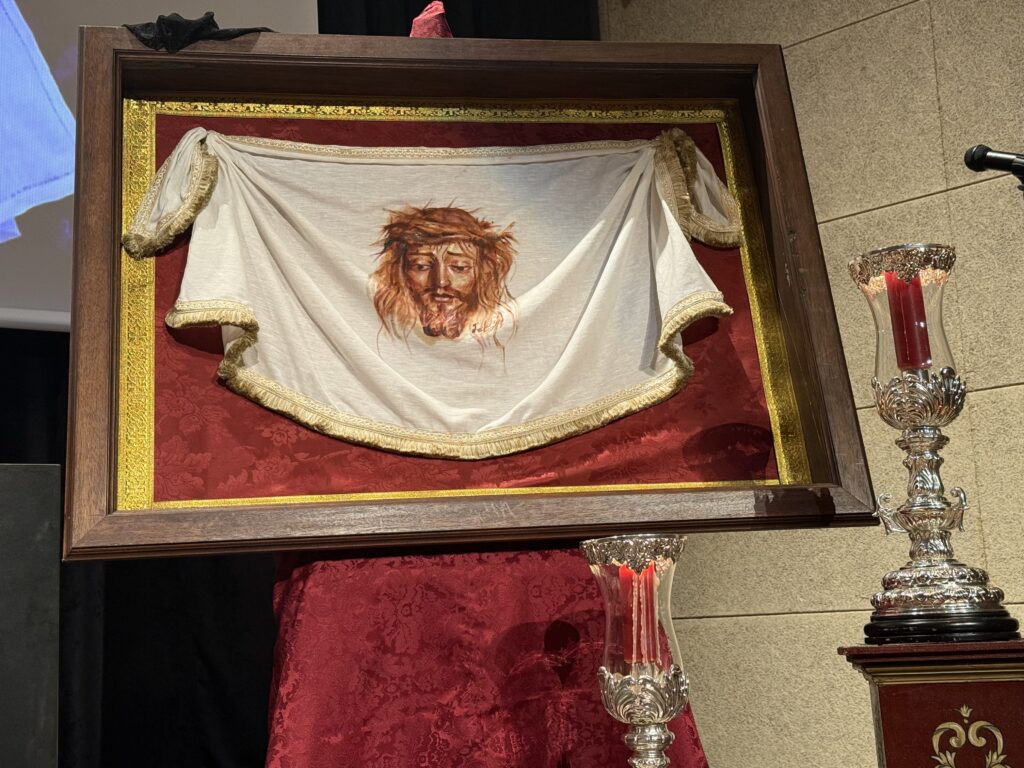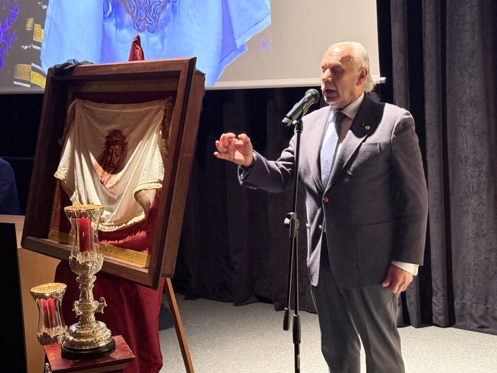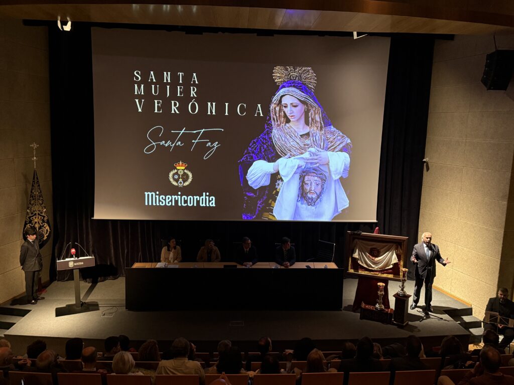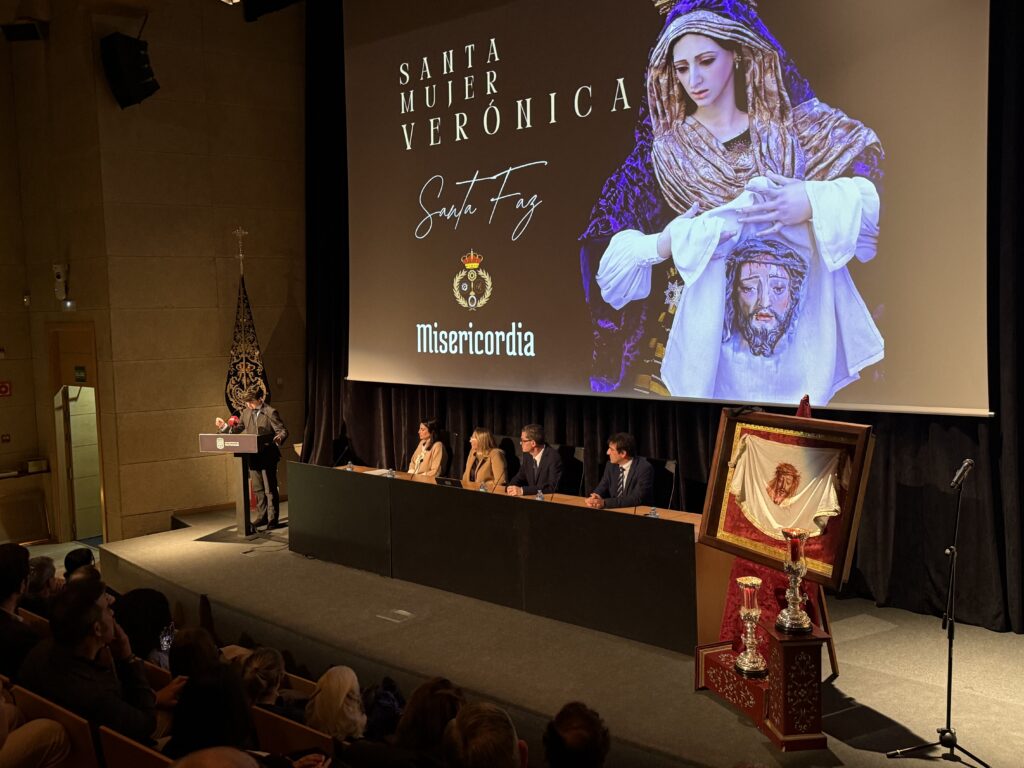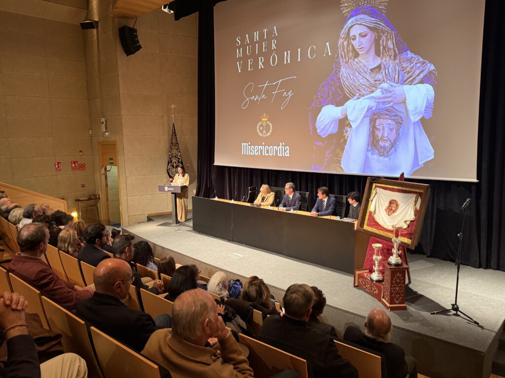 San Fernando ha vivido en la tarde de hoy un emotivo acto cofrade con la presentación del paño que portará la Santa Mujer Verónica el próximo Jueves Santo. La cita tuvo lugar a las 20:00 horas en el Auditorio “Lázaro Dou”, del Centro de Congresos Cortes de la Real Isla de León, congregando a numerosos cofrades y devotos.