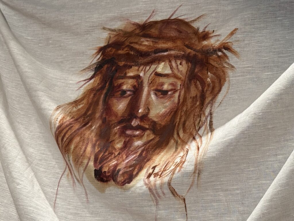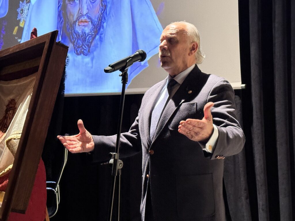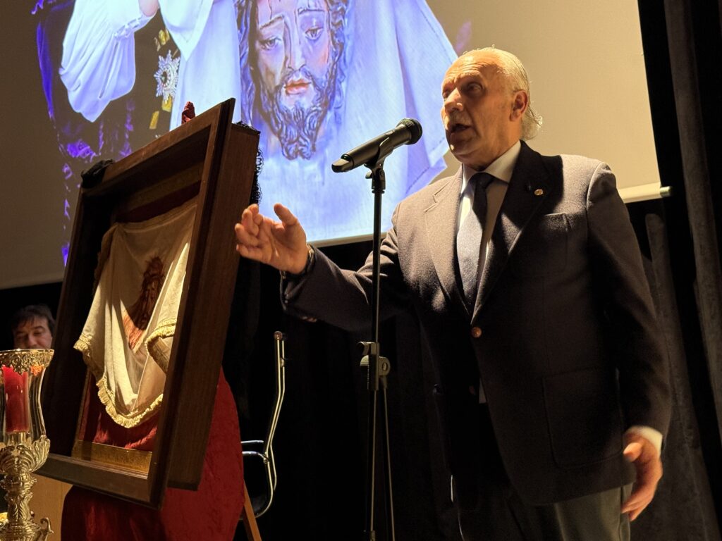 La obra, es una pintura del artista jerezano José Lorenzo Gallego “Jologa”, quien ha plasmado en el lienzo una representación cargada de simbolismo y recogimiento. La exaltación del paño corrió a cargo del cofrade Pablo Blázquez Conejero, que ofreció una elegante y profunda reflexión en torno al recorrido pasional de Jesús, abordado desde una perspectiva íntima y con especial atención a la figura de la Verónica. Un recorrido que centró los sentidos en el dulce rostro del Nazareno de la Pastora.