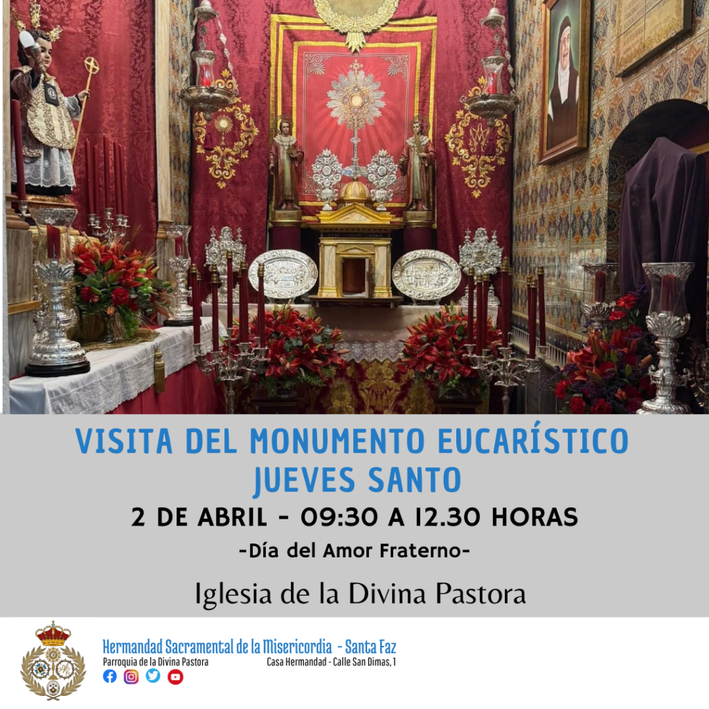 El Jueves Santo es el día del Amor Fraterno, y tras los oficios Jesús Sacramentado es depositado en el Monumento, un altar para que los fieles puedan acercarse al Señor vivo y presente durante las horas de su pasión.