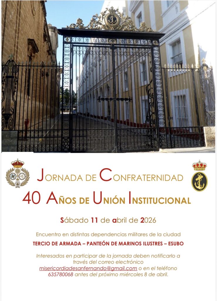 El encuentro tendrá lugar el próximo 11 de abril en distintas dependencias militares de la ciudad, concretamente en el Tercio de Armada, el Panteón de Marinos Ilustres y la Escuela de Suboficiales. La jornada se desarrollará en horario de mañana y estará marcada por el espíritu de fraternidad y unión entre la Hermandad y la institución naval.