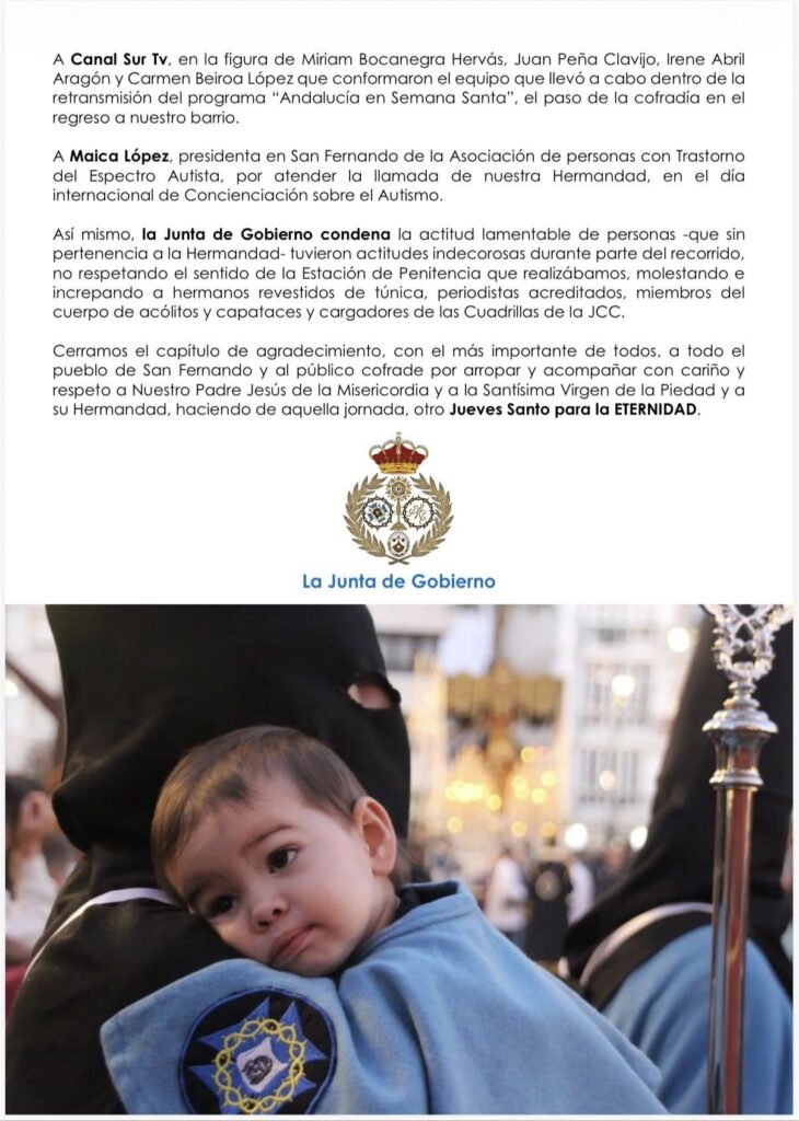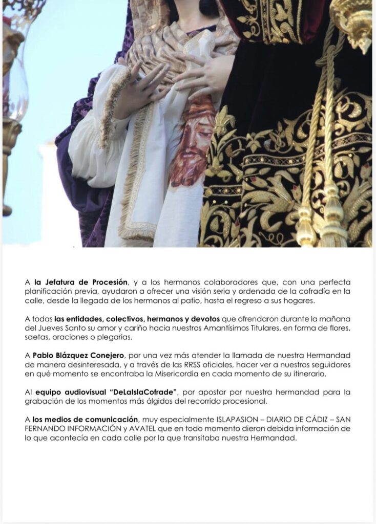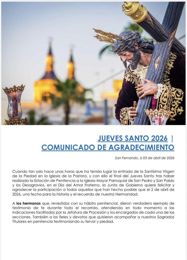 COMUNICADO | Agradecimiento Jueves Santo 2026