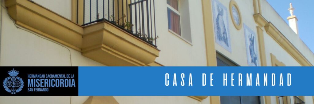 Junto a la puerta del almacén se encuentra la puerta que da acceso a la casa n°1 de la calle San Dimas, con un cierro típico de San Fernando, junto a la puerta existe un azulejo con la inscripción «Casa Hermandad de la Misericordia». La planta baja la componen una salita de reuniones, vitrinas, servicios, puerta de acceso al almacén y escalera que conduce a la planta alta, donde se encuentra la sala de juntas con balcón a la calle, vestíbulo con ventana al patio de la parroquia, una vitrina y la secretaria. En los laterales de la sala de juntas se encuentran colocadas amplias vitrinas para la exposición de parte de los ricos bordados que posee la hermandad. Hay colocado un azulejo al comienzo de la escalera que da acceso a la planta alta que recuerda a las personas que integraban la Junta de Gobierno en el momento de la inauguración el 26 de marzo de 1999.