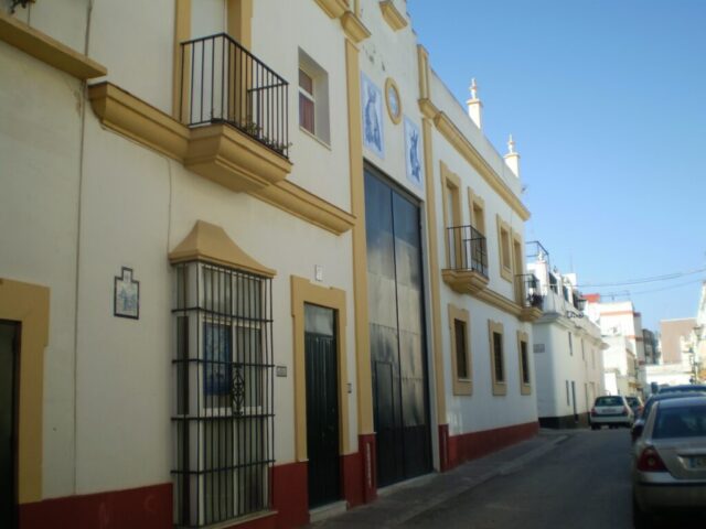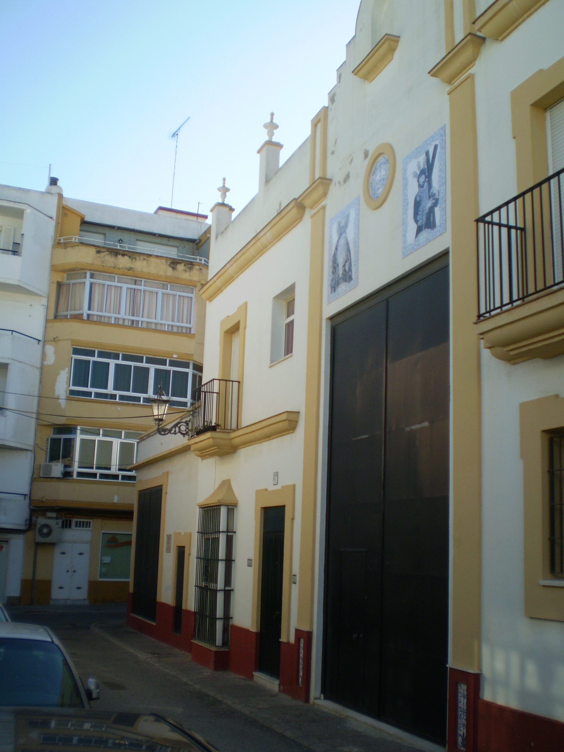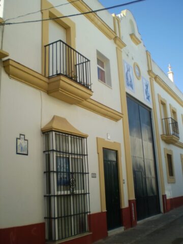 La casa de das pantas conserva el estilo de las viviendas de la Isla, con cierro, balcón y almenas. La planta baja está compuesta de almacén para los enseres, pasos de misterio, palio y custodia. Se accede al almacén por una puerta metálica de grandes dimensiones, 6×3 m. para que el paso de palio salga perfectamente montado. El vano se encuentra flanqueado por dos columnas rematadas con azulejos con una jarra con azucenas cada una de ellas y en el frontal el escudo de la hermandad de tono azul y en ambos lados retablos con los titulares. Rematándolo una hornacina, donde la Junta de Gobierno tiene intención de colocar una imagen de la Sierva de Dios -Hermana Cristina motivada por la vinculación de la hermandad con el Monasterio de la Santísima Trinidad de las Hermanas Carmelitas Descalzas, con la que mantiene Carta de Hermandad y la cofradía ha sido la impulsora de su proceso de beatificación.